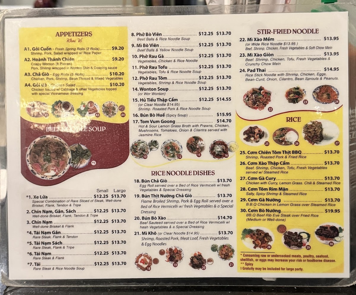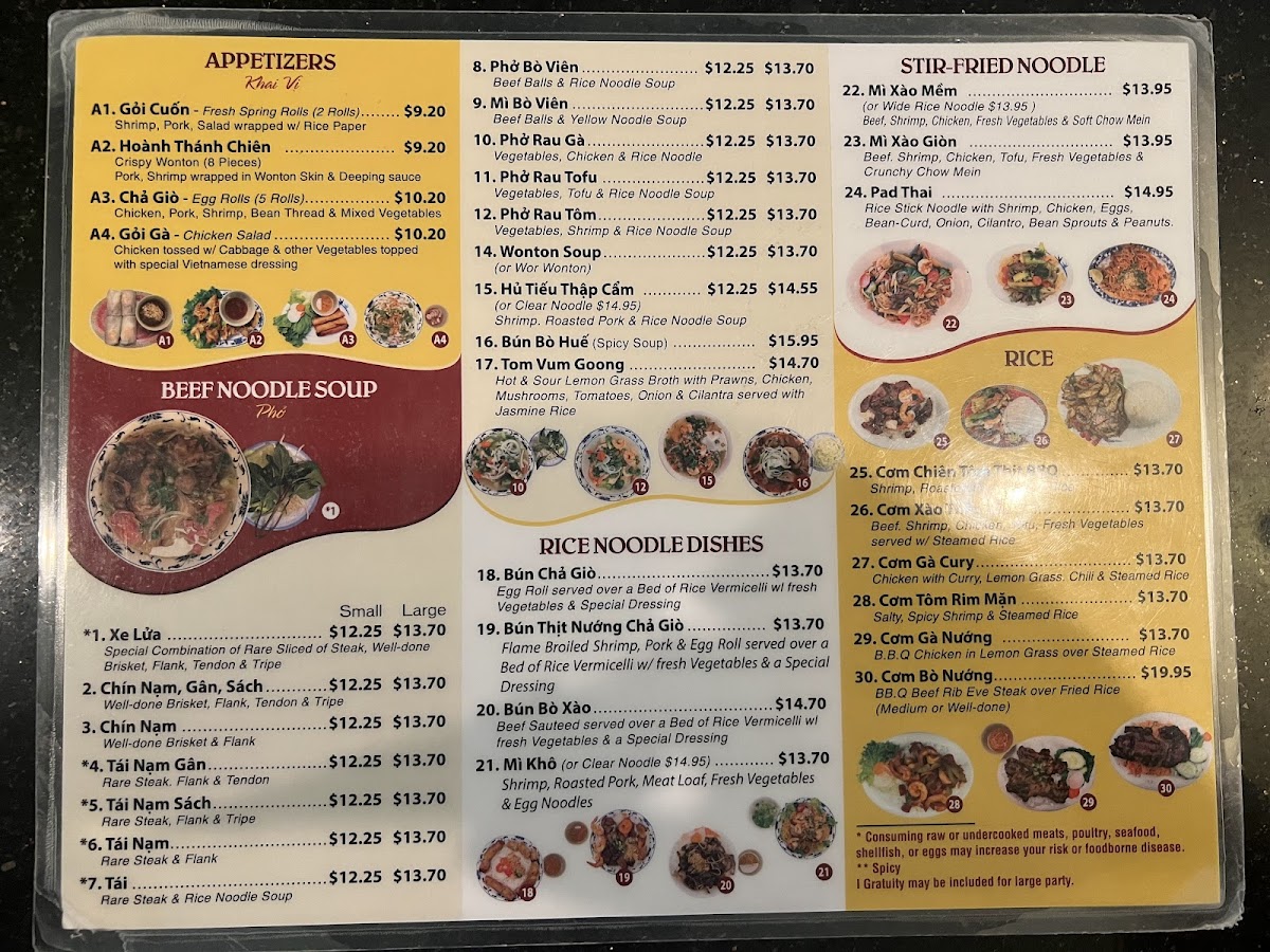 Phở 777 Vietnamese Noodle Restaurant Menu
